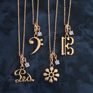 ハ音記号 ペンダントトップ K18ゴールドメッキ/プラチナメッキ/誕生石留め/宝石チャーム/高品質シルバーチェーンオプション【15,400円〜55,000円】