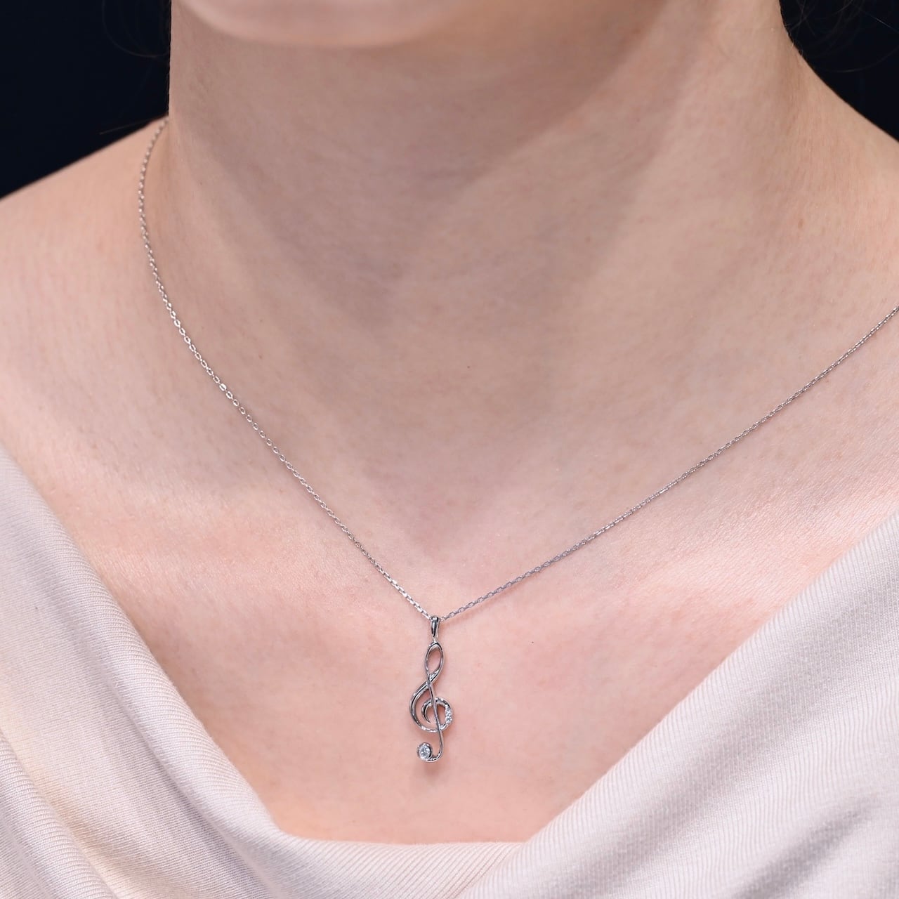 立体的なフォルムが特徴のト音記号ペンダントトップです。美しい曲線美やバランスにこだわっており、日常使いしやすいモチーフでありながらも上品な雰囲気を演出します。