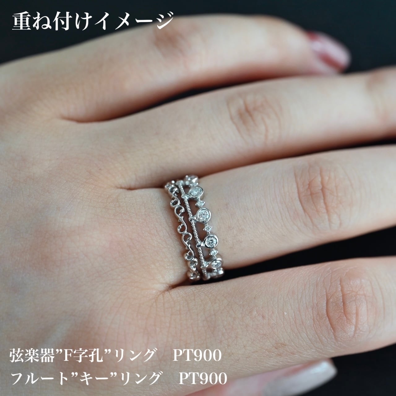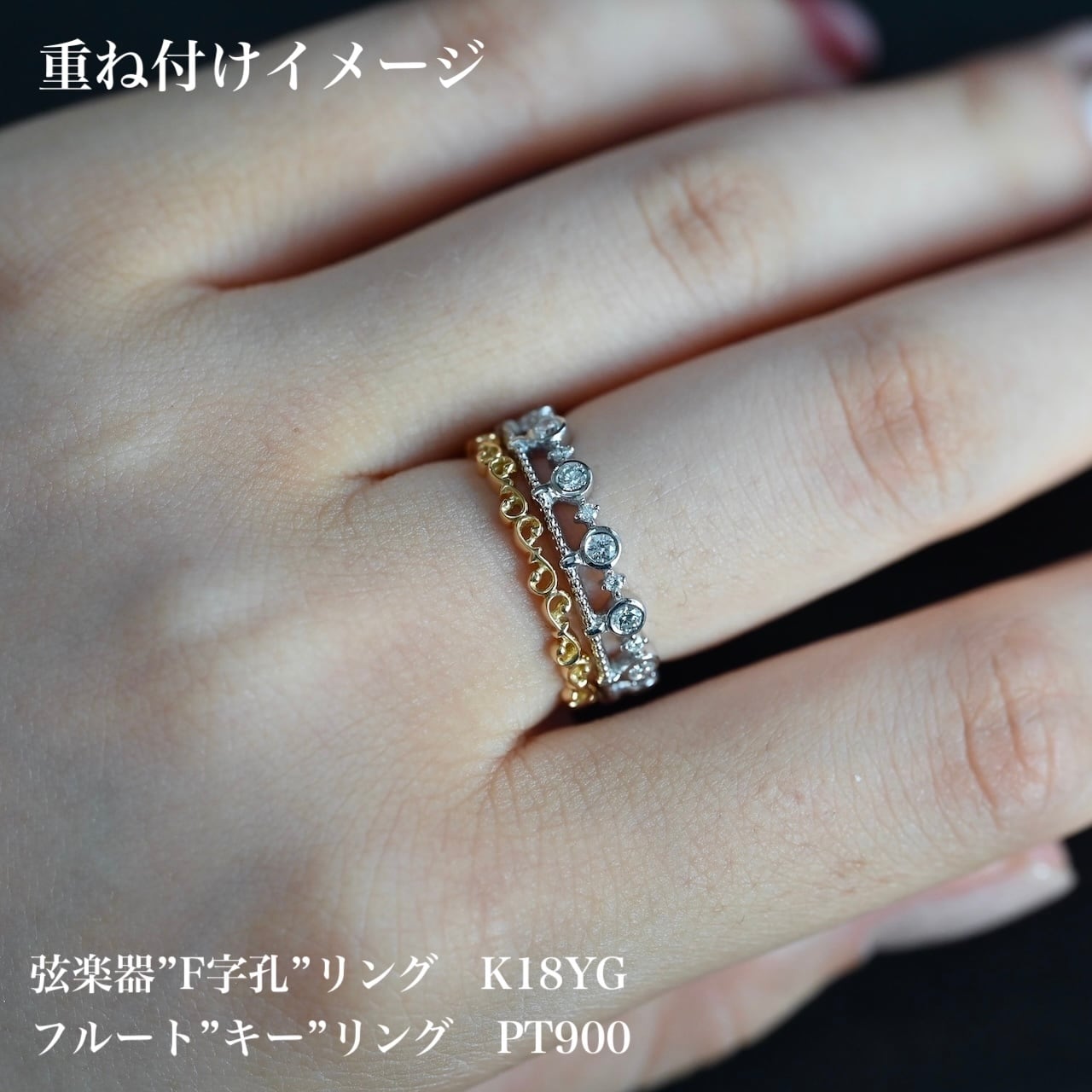 弦楽器・F字孔モチーフ・重ね付けリング (K18YG/PT900/K18PG)