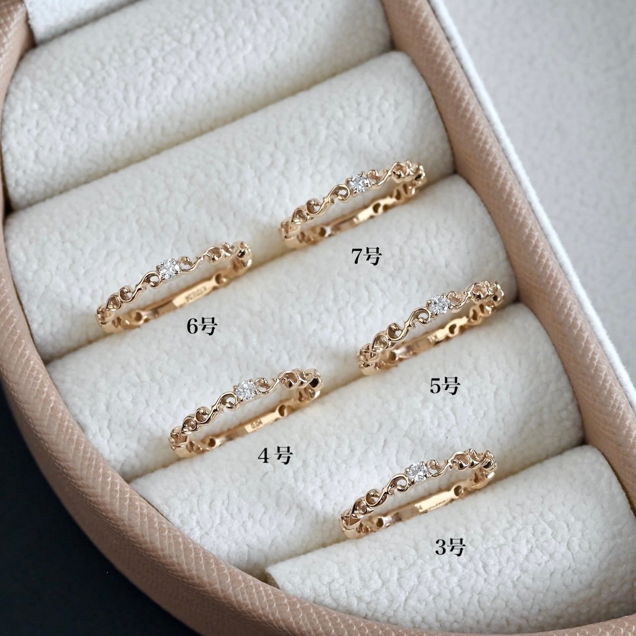 ※K10YGは淡いイエローゴールドに若干ピンクみを帯びた色合いになります。写真では背景によって色の写り方に差がございますが、ベージュ背景や着画が実物に近い印象です。