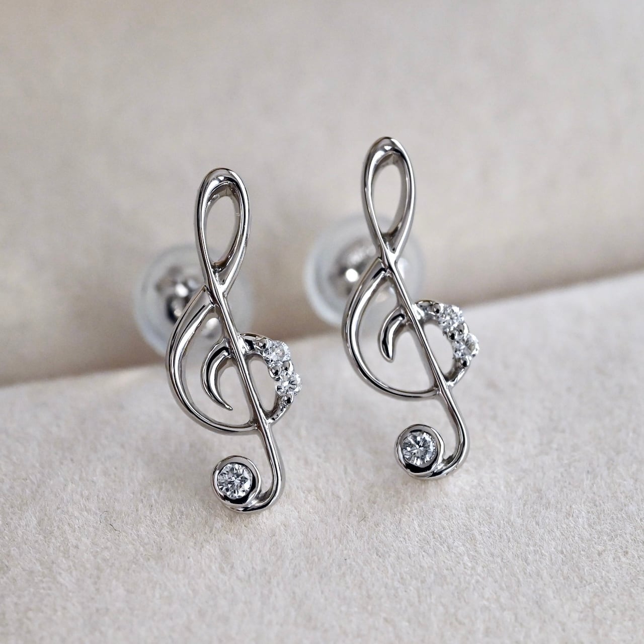 【予約販売|2/3(火)まで】ト音記号 ダイヤモンド スタッドピアス (両耳ペア) SILVER/K10YG/K18YG/K18PG/PT900 【77,000円〜154,000円】