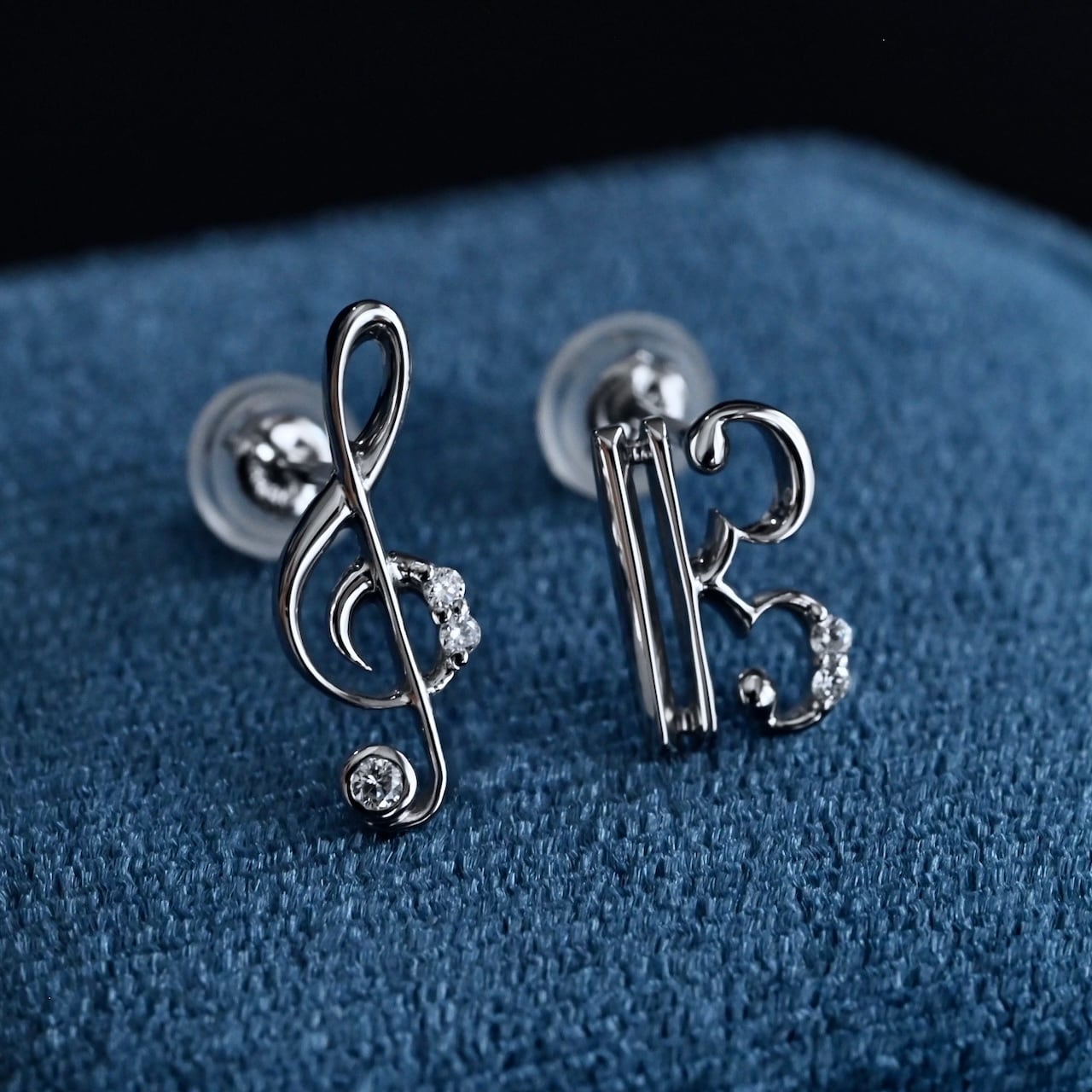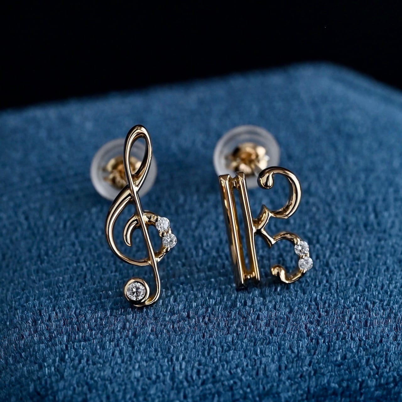 【予約販売|2/3(火)まで】ト音・ハ音記号 ダイヤモンド スタッドピアス (両耳ペア) SILVER/K10YG/K18YG/K18PG/PT900 【77,000円〜154,000円】
