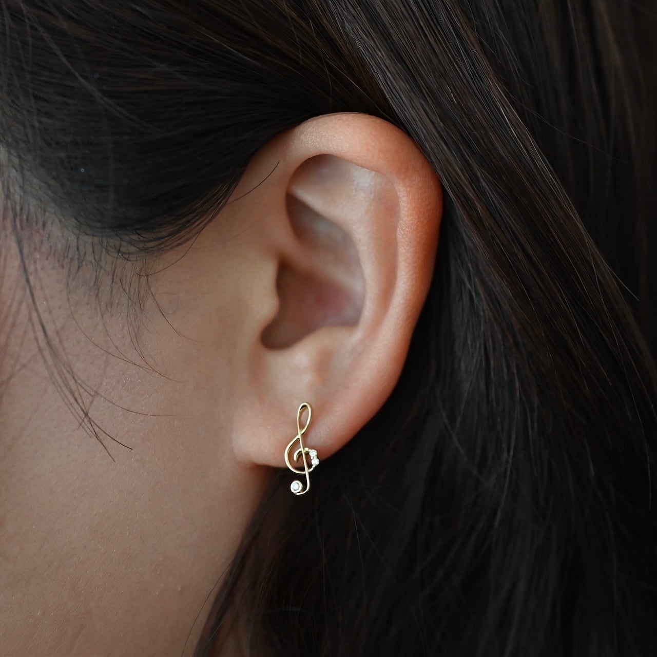 立体的なフォルムが印象的な、ト音・ハ音記号モチーフのスタッドピアスです。なめらかな曲線美とバランスの取れたサイズ感にこだわり、日常使いしやすいデザインに仕上げました。耳元で主張しすぎることなく、さりげなく上品な存在感を添え、シーンを選ばずお楽しみいただけます。
