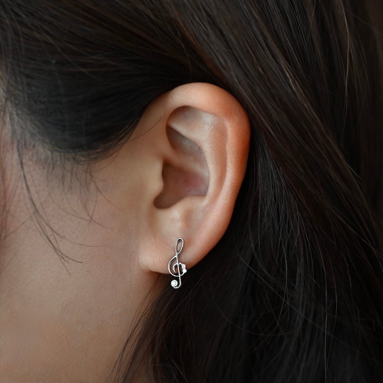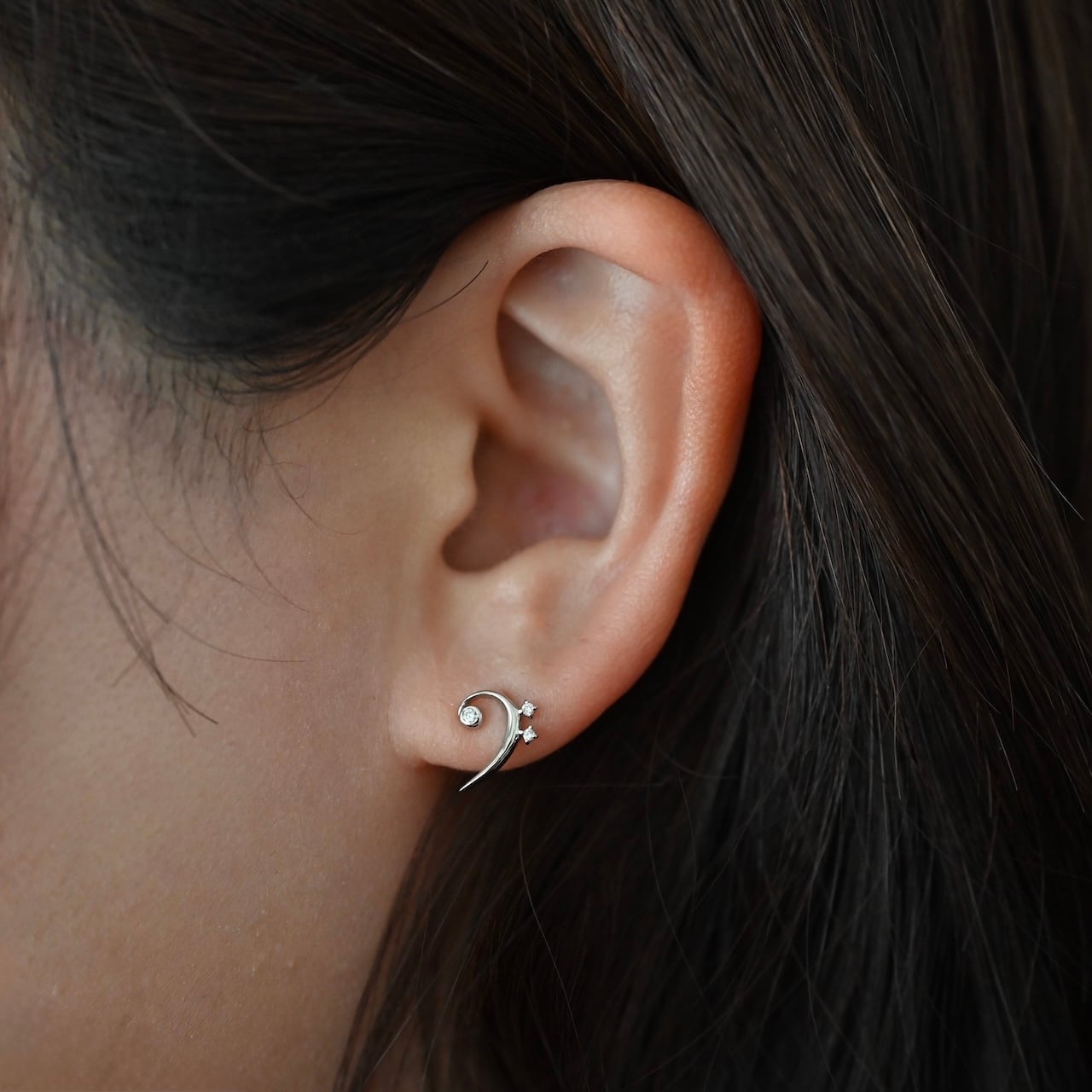 立体的なフォルムが印象的な、ト音・へ音記号モチーフのスタッドピアスです。なめらかな曲線美とバランスの取れたサイズ感にこだわり、日常使いしやすいデザインに仕上げました。耳元で主張しすぎることなく、さりげなく上品な存在感を添え、シーンを選ばずお楽しみいただけます。