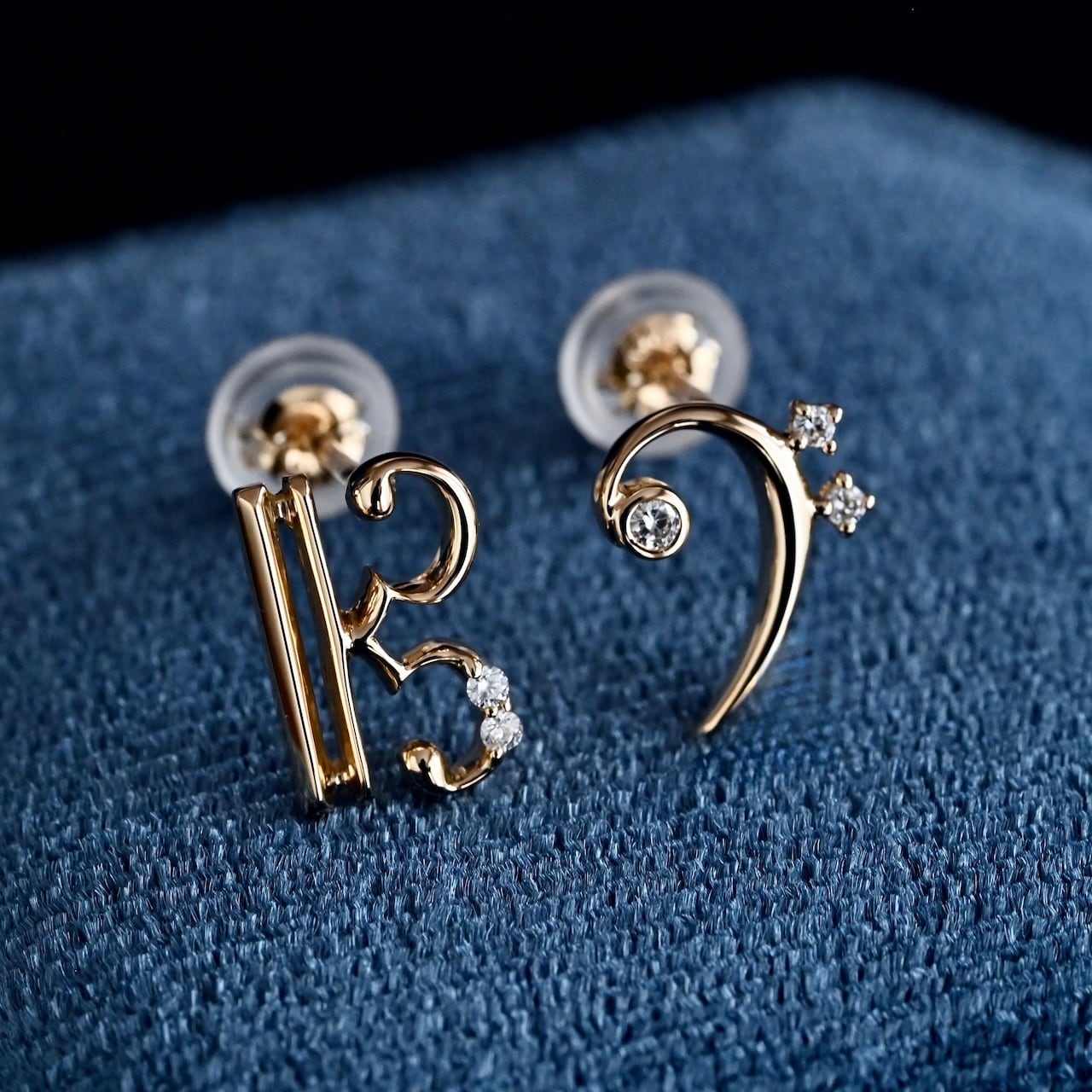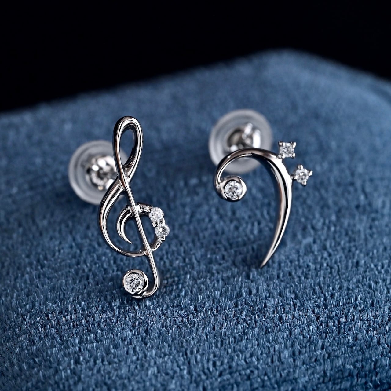 【予約販売|2/3(火)まで】ト音・へ音記号 ダイヤモンド スタッドピアス (両耳ペア) SILVER/K10YG/K18YG/K18PG/PT900 【77,000円〜154,000円】