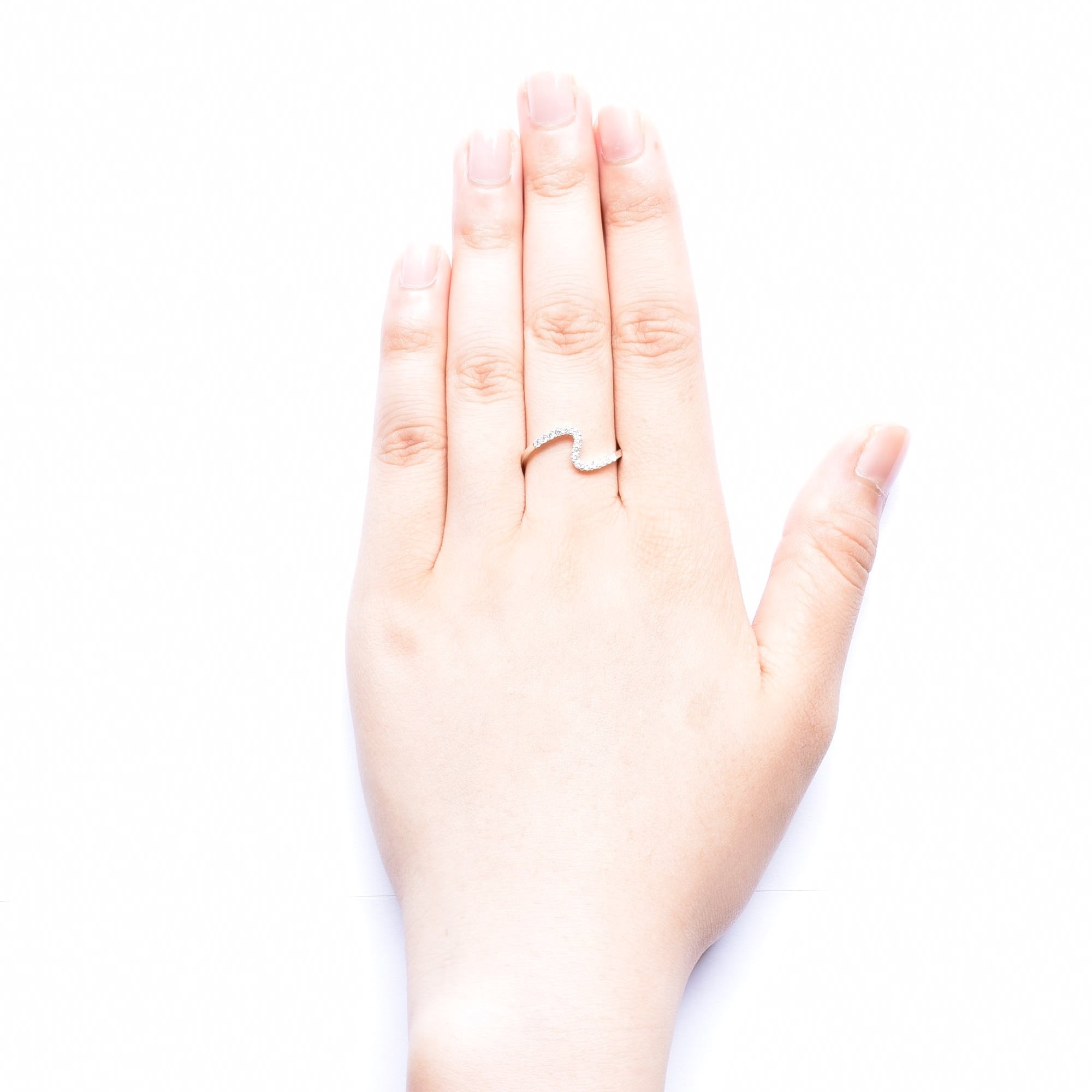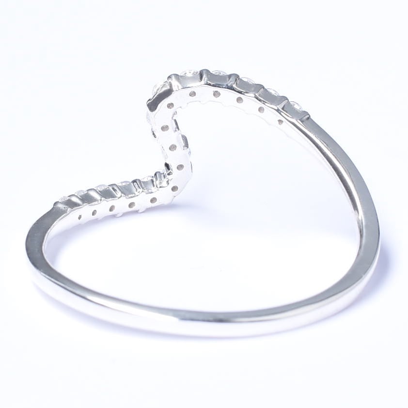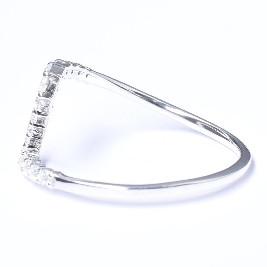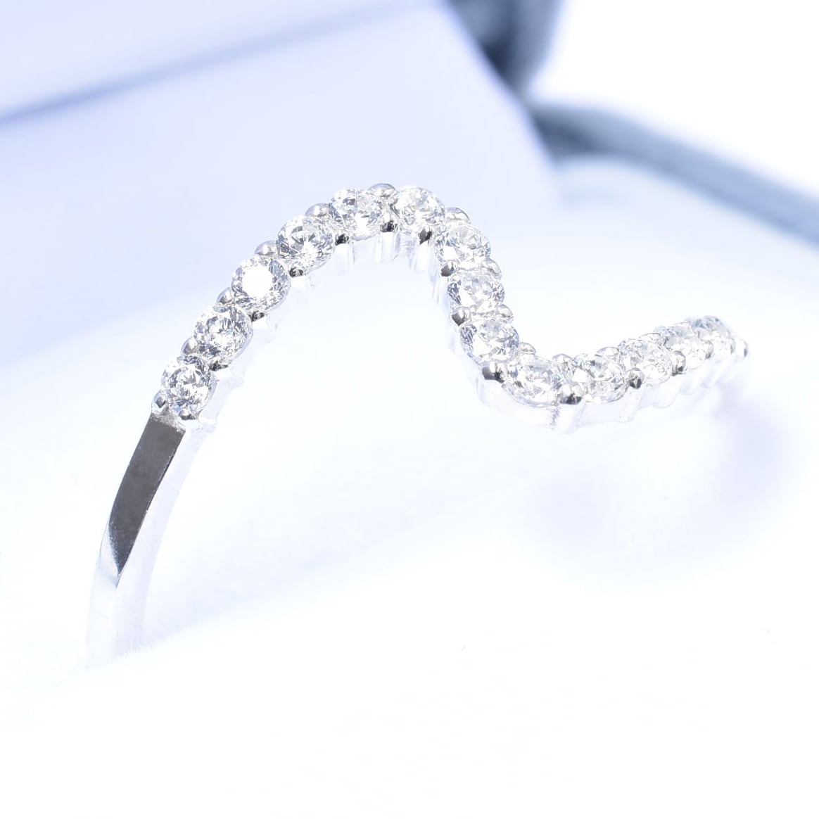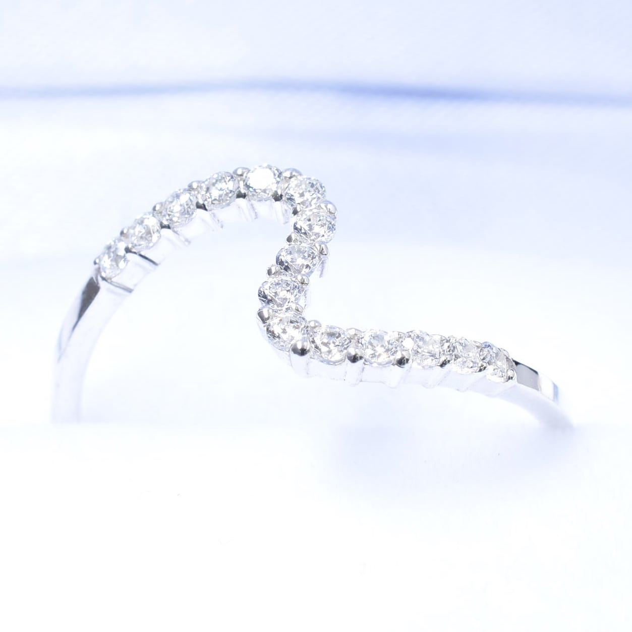 洗練されたカーブラインが美しい、プラチナ素材のエタニティーリング。ハーフエタニティのダイヤモンドを滑らかにカーブさせたユニークなフォルムは、定番のエタニティとは一線を画す上品な存在感を放ちます。