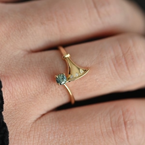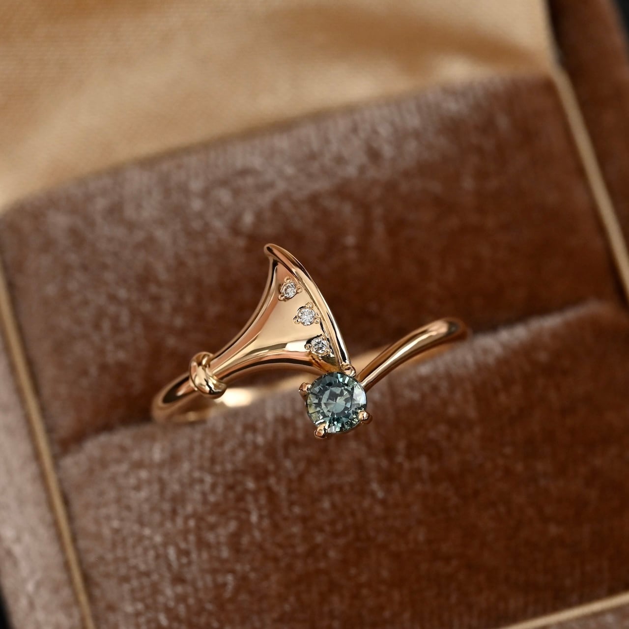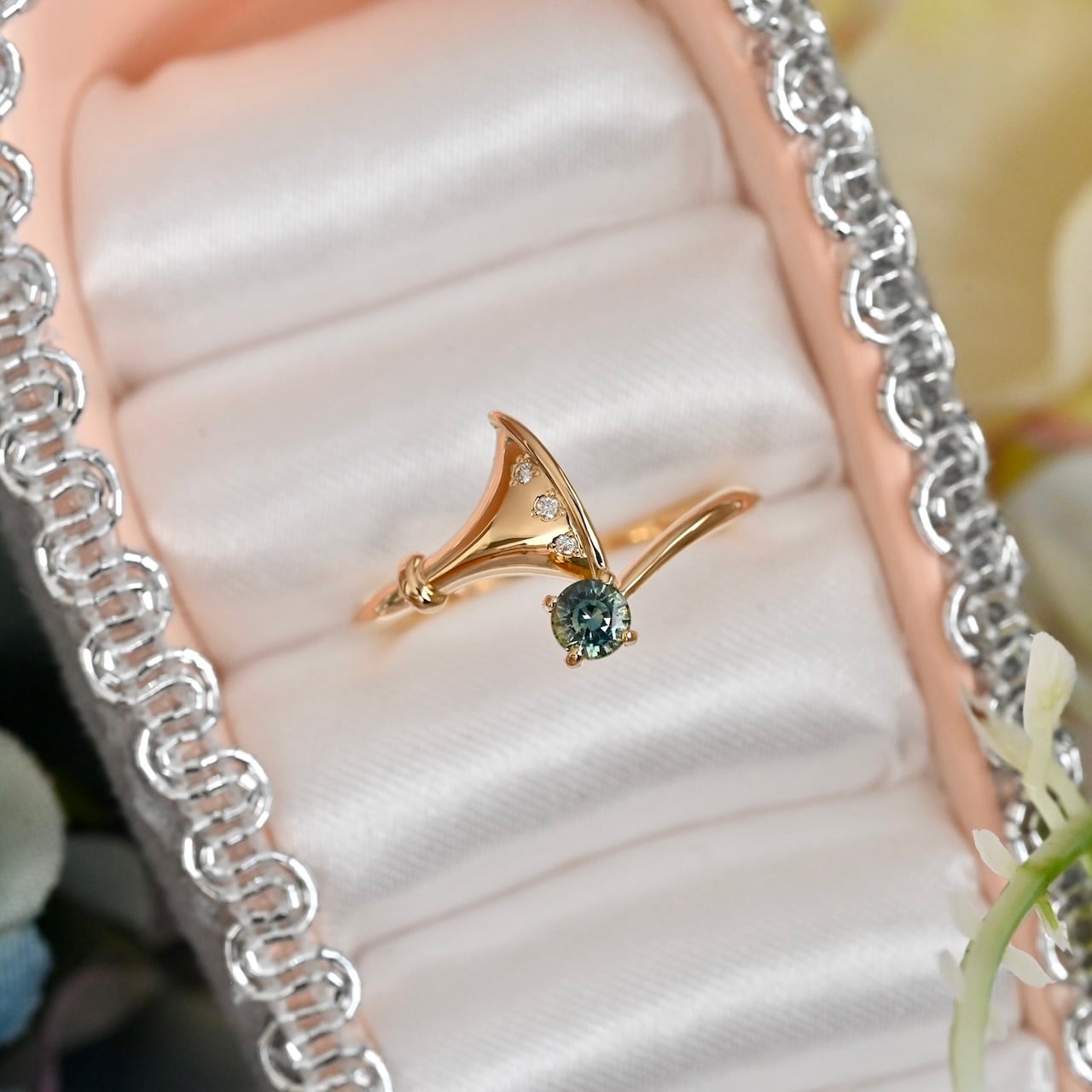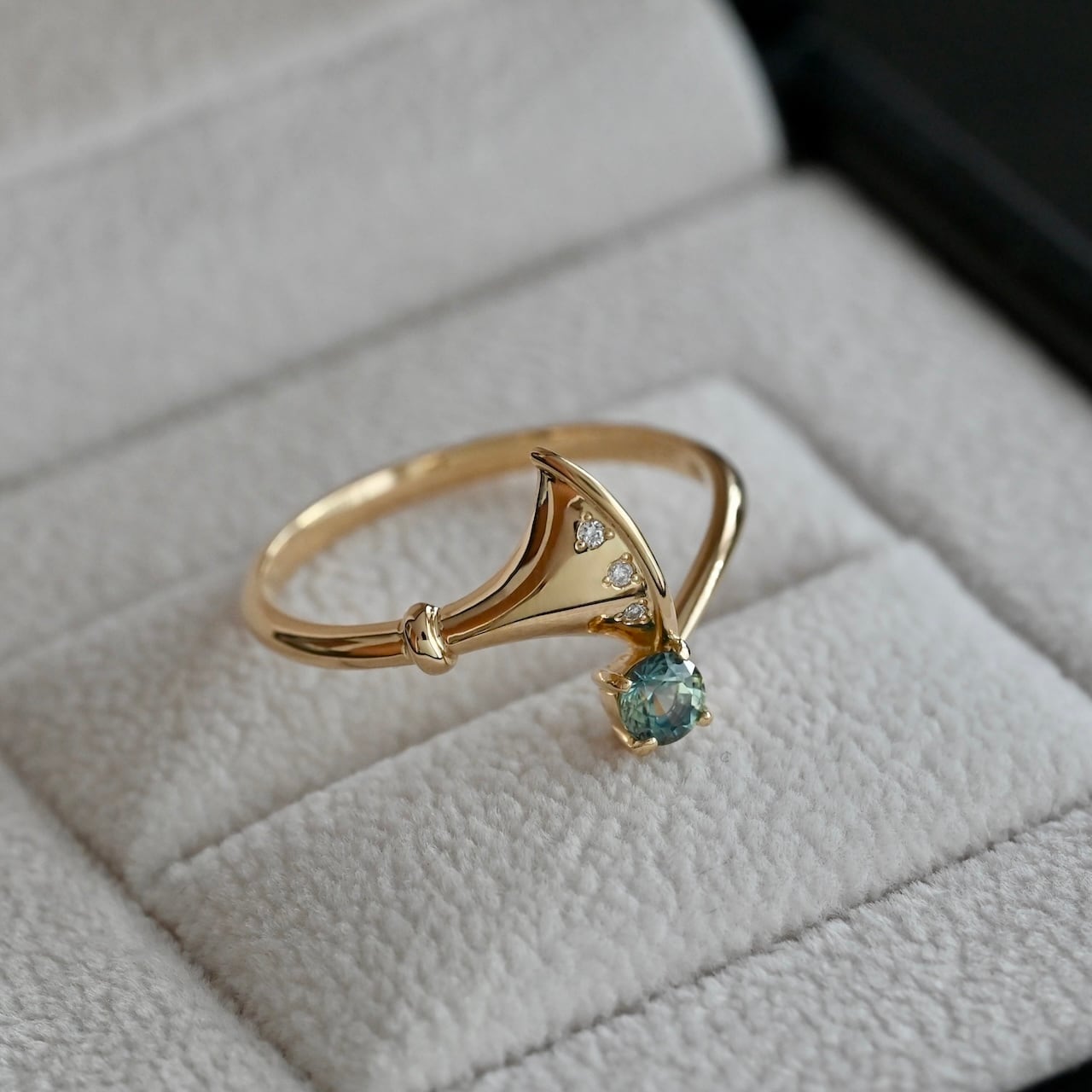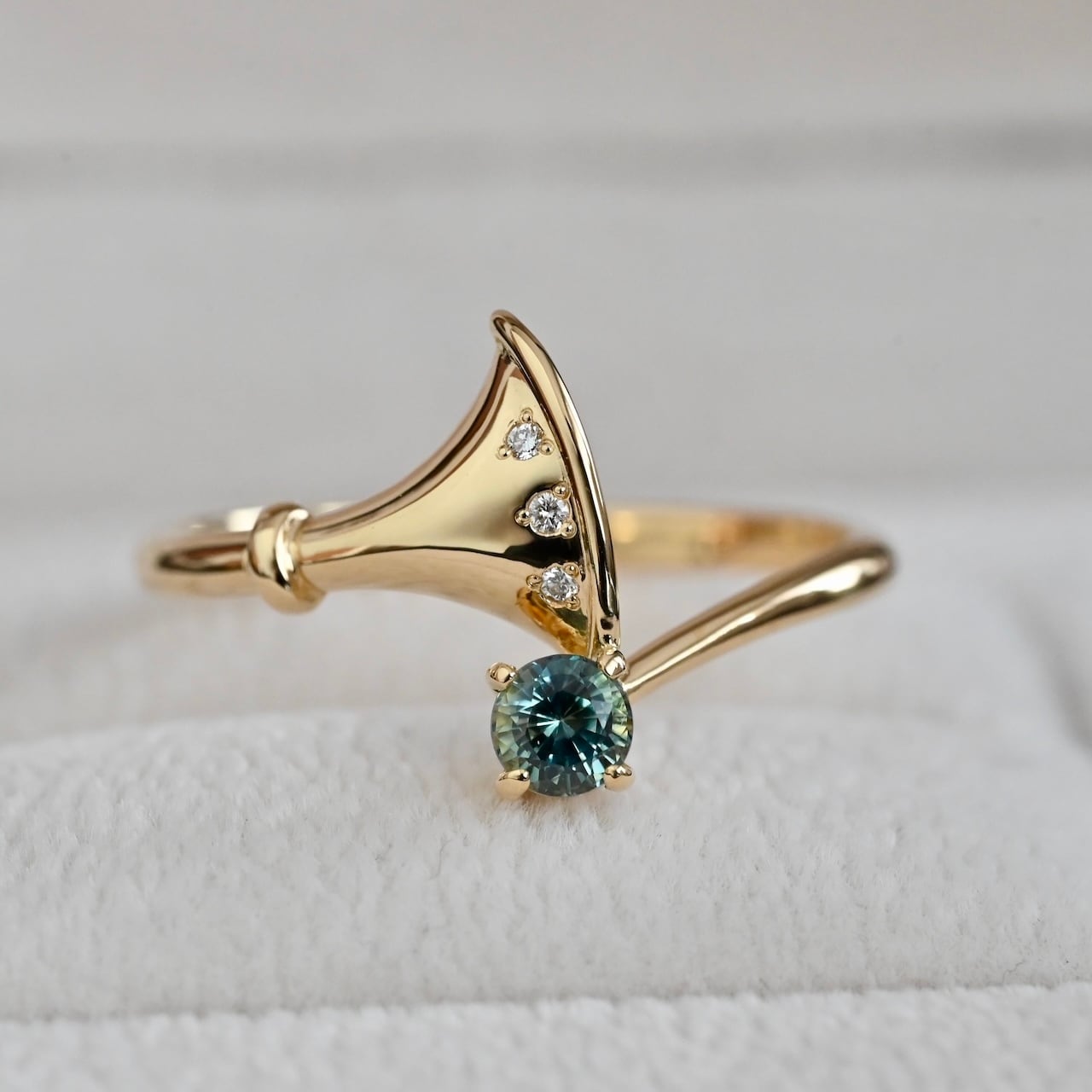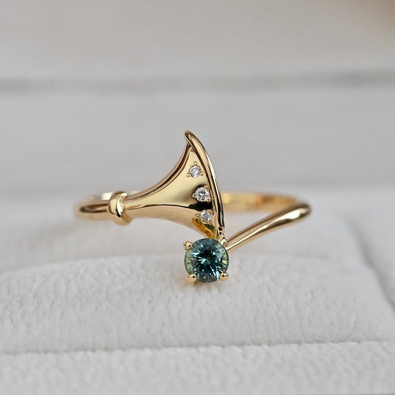 【1点限り】管楽器・ベルモチーフ グリーンサファイア リング K18YG