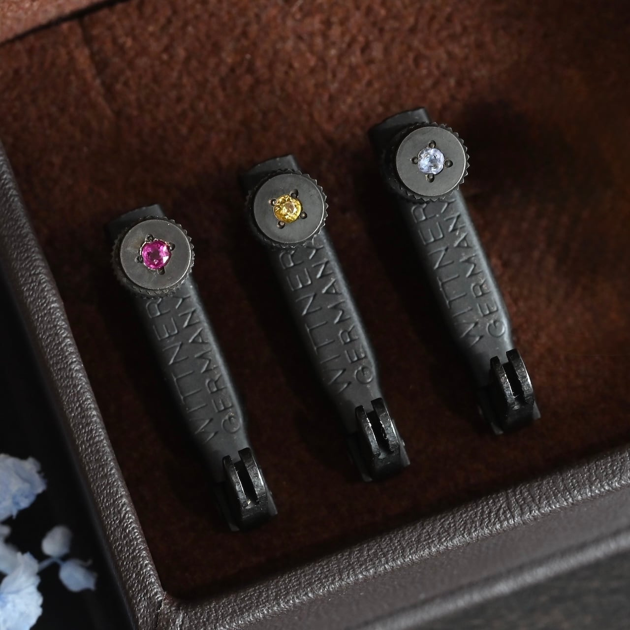 こちらはウィットナー(Wittner )純正のヴァイオリン用アジャスターに宝石留めを行ったカスタムオーダー品です。純正パーツですのでお手元に届いて簡単に取り付け可能です。是非音色の変化をお楽しみください。
