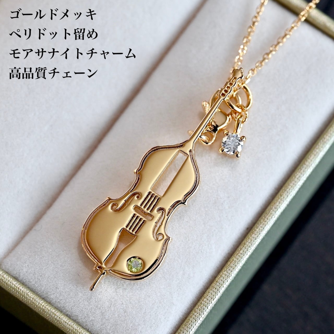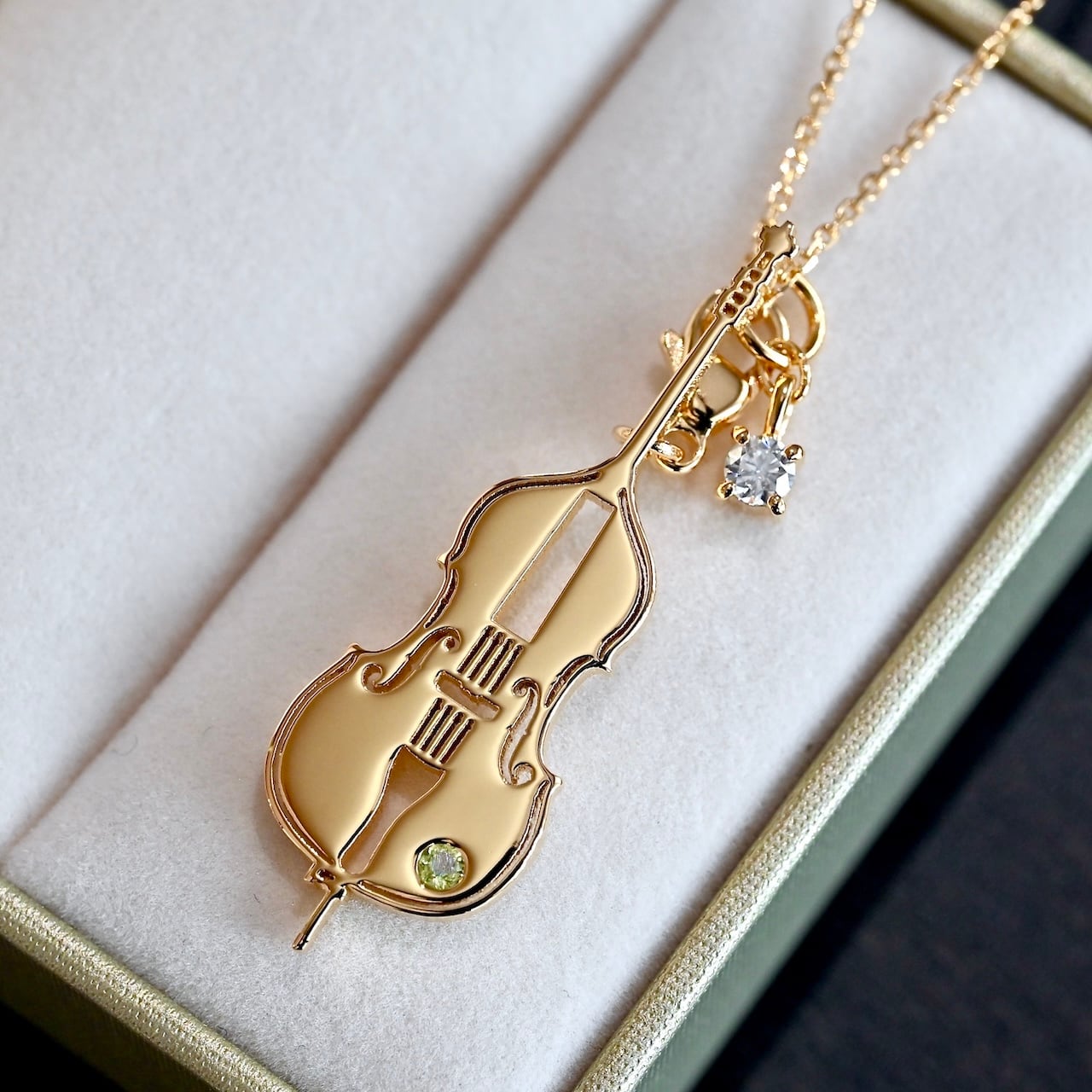 コントラバス ペンダントトップ K18金メッキ/プラチナメッキ/誕生石留め/高品質シルバーチェーンオプション【17,600円〜56,100円】