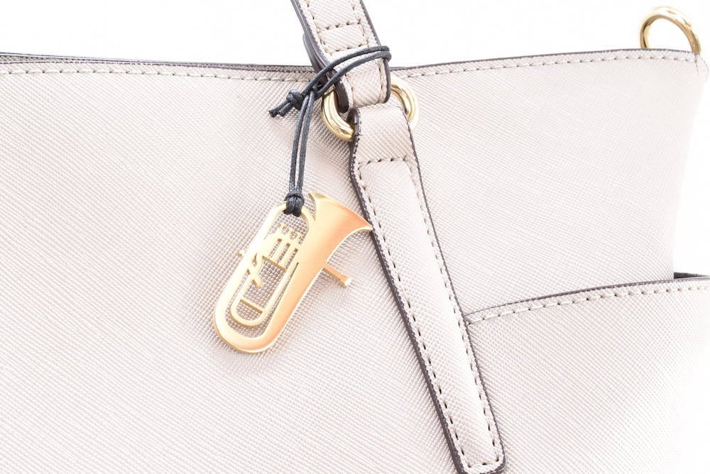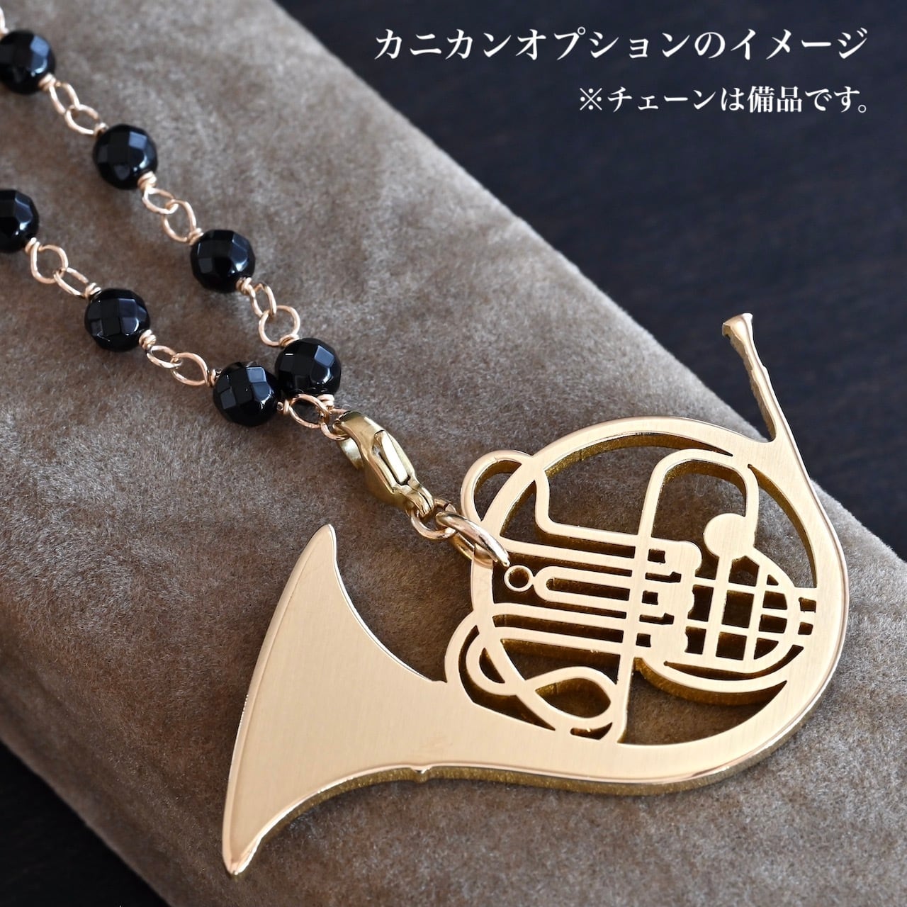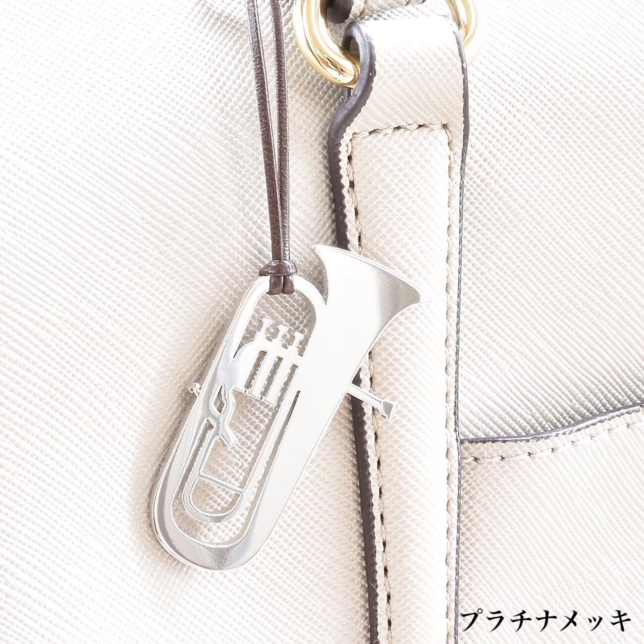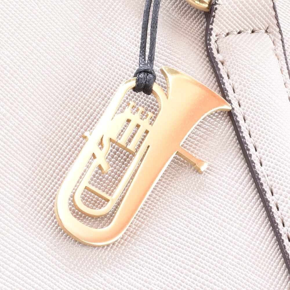 2mm厚の真鍮をユーフォニアムの形に細かく切り出したバッグチャームです。男女問わずお使いいただけるユニセックスなデザインとなっており、カバンや楽器ケースのアクセントとしてお使いいただけます。色は真鍮素地、K18ゴールドメッキ、プラチナメッキからお選びいただけ、お好みで誕生石もあしらえます。またペンダントオプションをお選びいただくと、ゆったりとした雰囲気のロングペンダントとしてお使いいただけます。ご自身用はもちろん、大切な人や特別な日のプレゼントとして喜ばれる商品です。