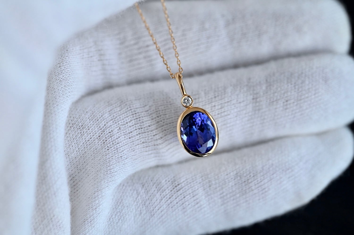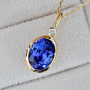 大きめのタンザナイト(2.89ct)を使用したK18YG製の1点物ペンダントトップです。宝石下部まで美しく見せるために必要最小限の枠組みで構成しております。上質な宝石で日常を彩る一生モノのペンダントトップとして、末長くご愛用いただける商品となります。